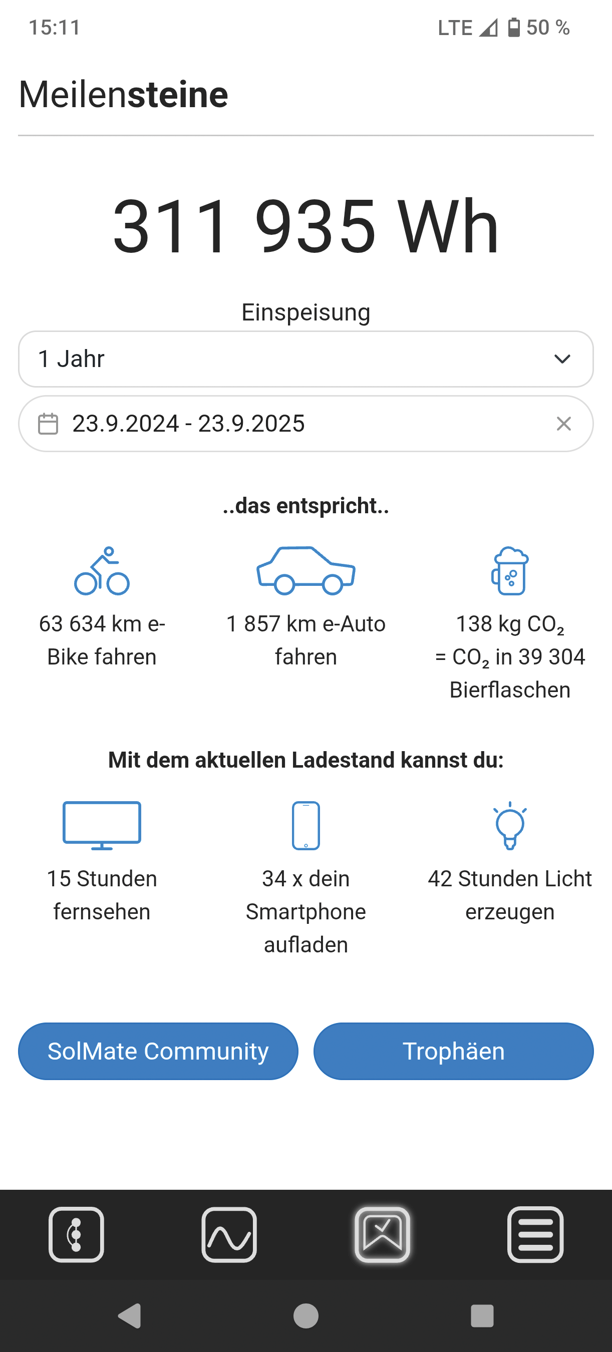 Der erzeugte bzw. gespeicherte Solarstrom wird in Relation zu Geräten gesetzt, die mit Strom betrieben werden (siehe Screenshot anbei).