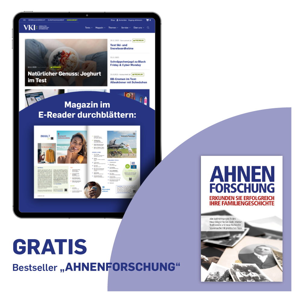 ✓ Voller Zugriff auf alle Tests und Reports auf konsument.at.