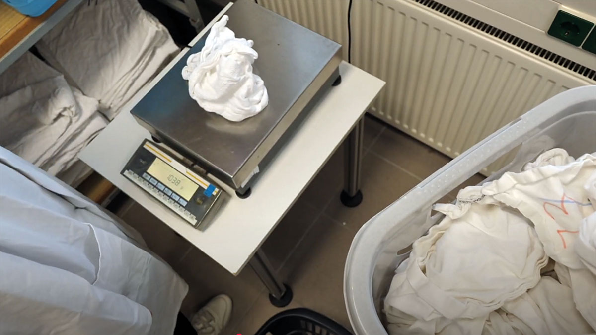 Zum Ermitteln der Restfeuchte der Wäsche wiegen wir sie vor und nach dem Trocknungsdurchgang ab. Außerdem überprüfen wir im Pflegeleicht- und Bügelfeuchtprogramm, ob alle Stücke gleichmäßig trocken sind.